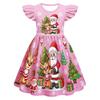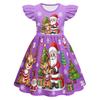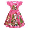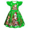 Kids Girls Cartoon Santa Claus Christmas Tree Elk Print Ruffle Sleevess New Year Dress