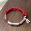 Douyin Style Thick Silver Copper Anti-Allergic Good Luck Bangle - "May All Your Wishes Come True"