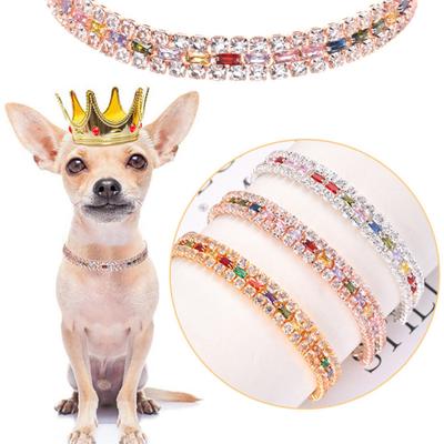 Dog Necklace Adjustable Colored Zircon Three Rows Pet Cat Dog Collar Rhinestone Necklace for