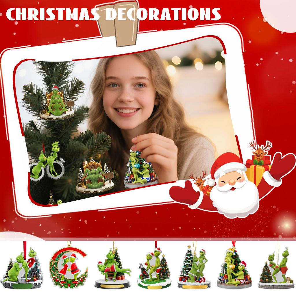 Personalized Couple Christmas Figurines, 2D Flat Green Christmas Couple Figurines, A Fun Anniversary Gift For Husbands And Wives.