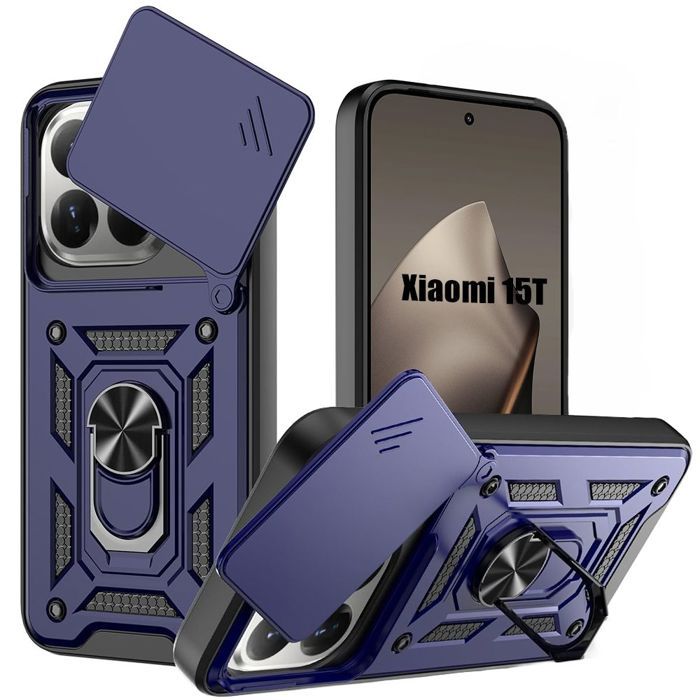 Hard Case - E.F.CONNECTION - for Xiaomi 15T - Shockproof with Back Ring Reinforced Edge - Navy Blue