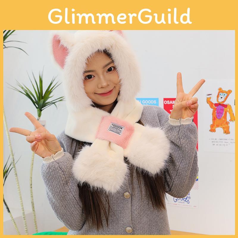 Bear Stylish Plush Winter Hat And Scarf For Men And Women Soft And Design Warm