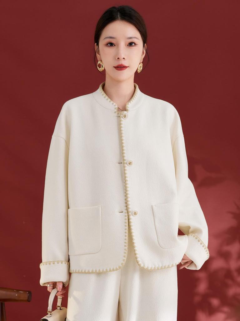 Elevate your autumn and winter wardrobe with this exquisite wool blend acetate coat designed for women. Crafted with luxurious wool material, it's insulated for warmth and comfort on chilly days. The coat features a classic round neckline and long sleeves, ensuring a timeless and elegant silhouette. Practical pockets add a functional flair, making it an ideal choice for daily wear. Embrace a gentle Korean-inspired style that embodies sophistication and high-end fashion.