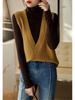Women's Slimming V-Neck Knitted Wool Vest - Versatile Sleeveless Autumn/Winter Sweater for Layering
