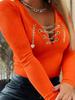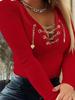 Elegant V-Neck Long-Sleeve Chain Women's Autumn/Winter Casual Top