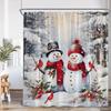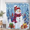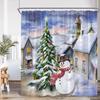 Funny Snowman Shower Curtain Silver Pine Branches Winter Forest Cedar Red Truck Elf Christmas Bath Curtains Home Bathroom Decor