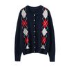 Women's 100% Cashmere Geometric Diamond Knit Color Block Cardigan Sweater