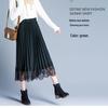 Autumn/Winter Lace Pleated Skirt - Korean Style Slim Fit, Plus Size, Mesh Tulle, Black/Green