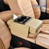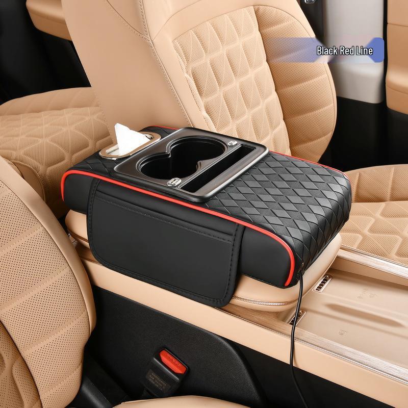 Rhombus Charging Car Armrest with Nappa Leather, Dual Cup Holder, Storage & Tissue Box.
