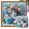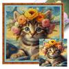 Full Embroidery Eco-cotton Thread 11CT Printed Flower Cat Cross Stitch Kit Art