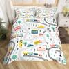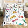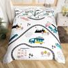 Cartoon Cars Duvet Cover Single Queen City Roads Bedding Set Hand Drawn Truck Bicycle Comforter Cover for Boys Teen Room Decor