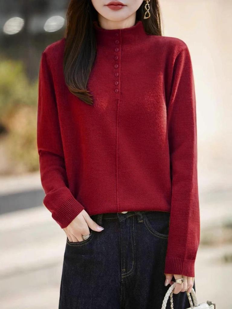 Stylish Women's Semi-High Neck Knit Sweater: French Autumn/Winter Collection
