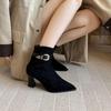 Chic Autumn & Winter Frosted Leather Ankle Boots with Buckle, Pointed Toe, and Chunky Heel