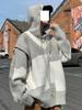 Men's Black & White Patchwork Knitted Sweatshirt, Autumn/Winter, Oversized Hooded Jacket, High-End Casual Style.