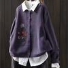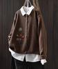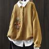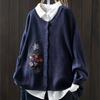 Johnature Women Vintage Embroidery Floral Sweaters O-Neck Long Sleeve Solid Color Button Knitted Autumn Sweaters