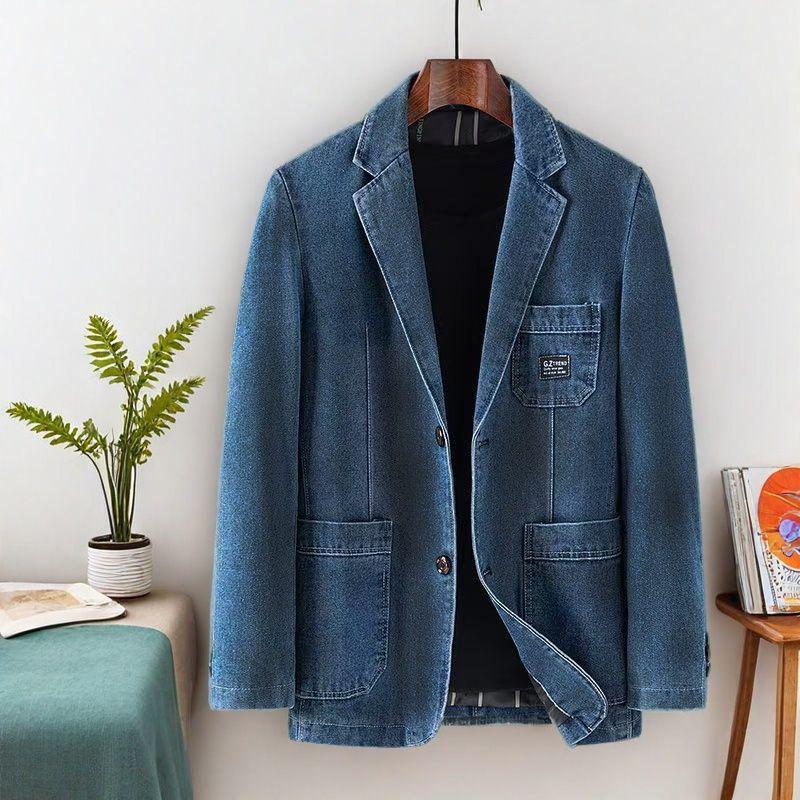 Elevate your style with this versatile single-breasted denim blazer, designed specifically for the modern man. Perfect for the transitional seasons of spring and autumn, this jacket features a tailored neckline and a sleek silhouette. Crafted from a high-quality wool material, it offers a thin outerwear layer that ensures comfort and sophistication. The jacket includes detailing with soft wool fur, providing a luxurious touch to your everyday look. Ideal for both casual and semi-formal occasions, this jacket effortlessly combines trendy aesthetics with high-end fashion.