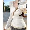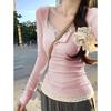 Elegant Lace Two-Piece Slim-Fit Long-Sleeve T-Shirt for Women - French Spring/Autumn Style