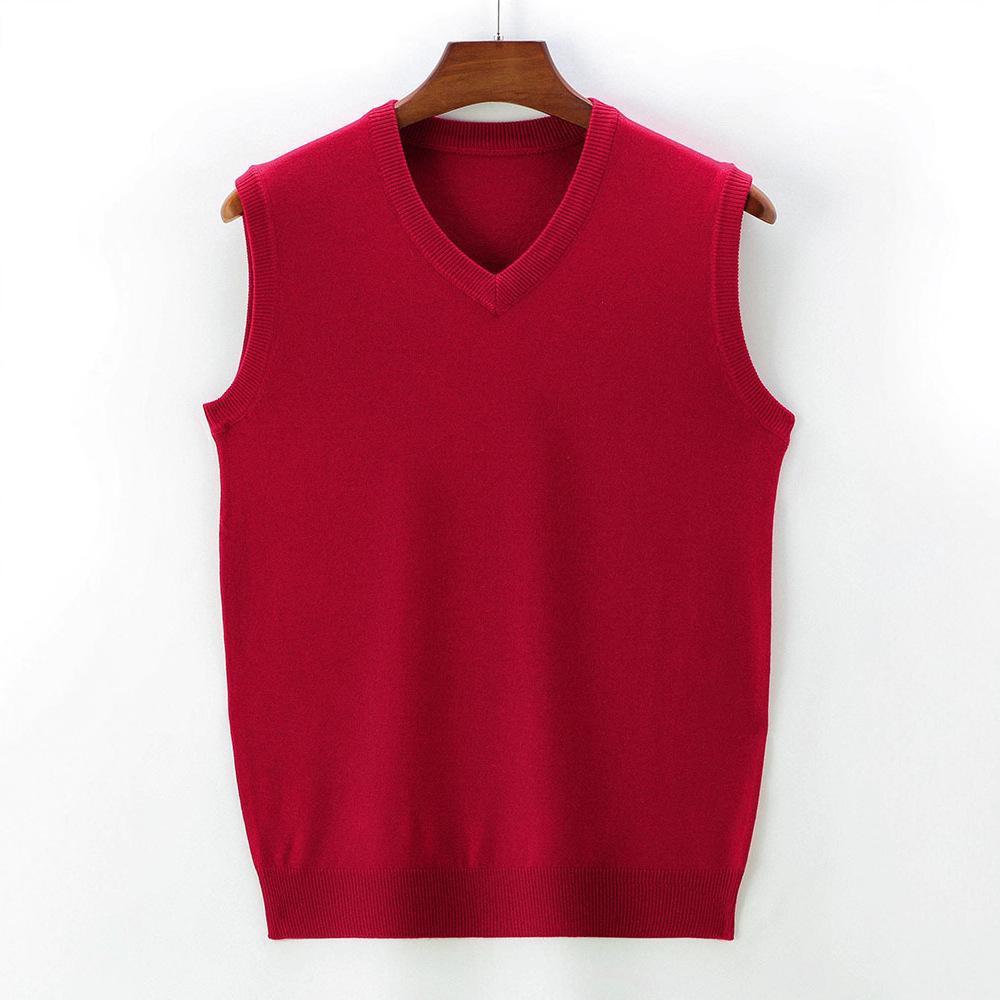 Elevate your autumn and winter wardrobe with this stylish V-neck knit vest. Expertly crafted from soft cotton, it offers comfort and warmth without the bulk of sleeves. Its rich red hue adds a vibrant touch to any outfit, making it a versatile layering piece for cooler seasons. Perfect for pairing over shirts or under jackets, this waistcoat effortlessly combines function and style for the modern man.