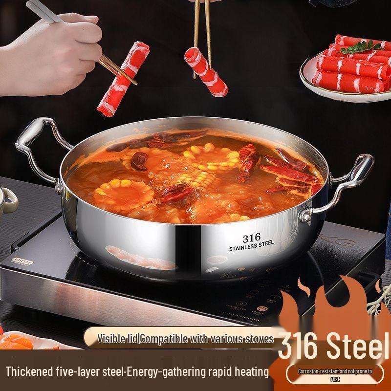 Extra Thick 316 Stainless Steel Double-Ear Hot Pot with Lid for Steaming & Stewing - Compatible with Induction & Gas Stoves