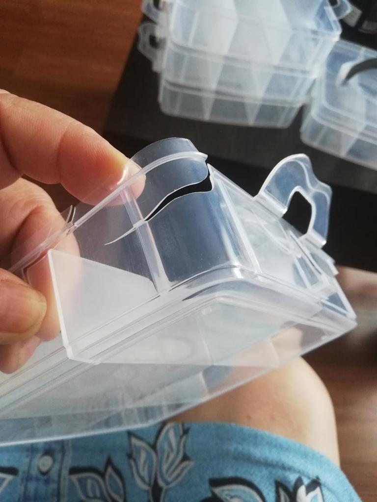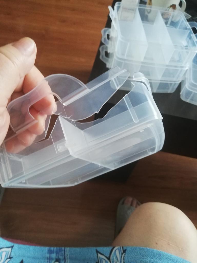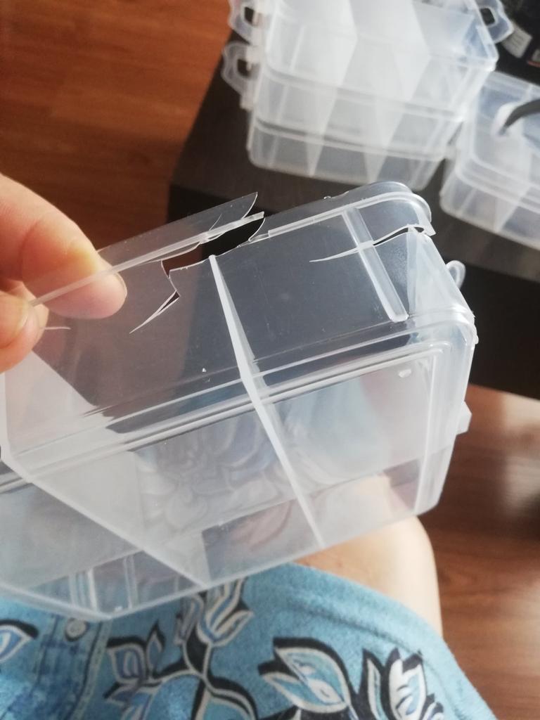 The packaging itself was intact, but the storage box was severely damaged. The plastic is very thin and fragile.