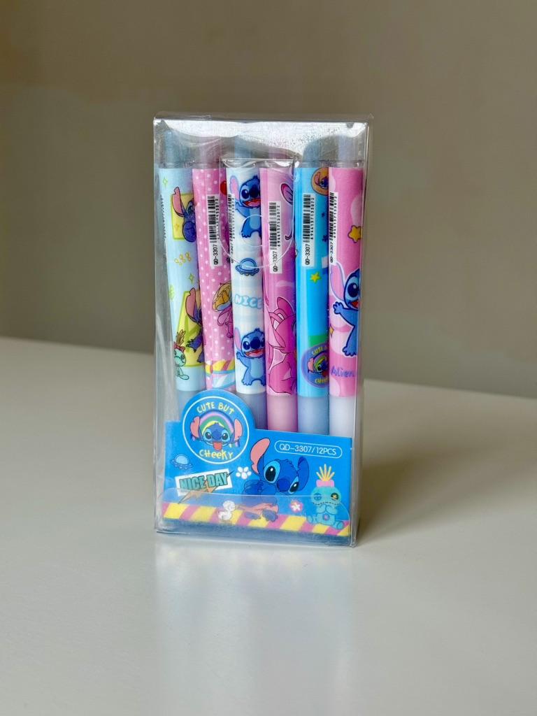 MINISO Stitch Gel Pens12pcs Cartoon New Pressing Pen Black Water Ink 0.5mm Cute Signature Pen Stationery Student Gift