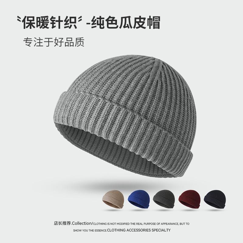 Solid Color Brimless Knitted Hat Autumn and Winter Hat Men's Versatile Personality Niche Yuppie Shopping Hip Hop Landlord Hat