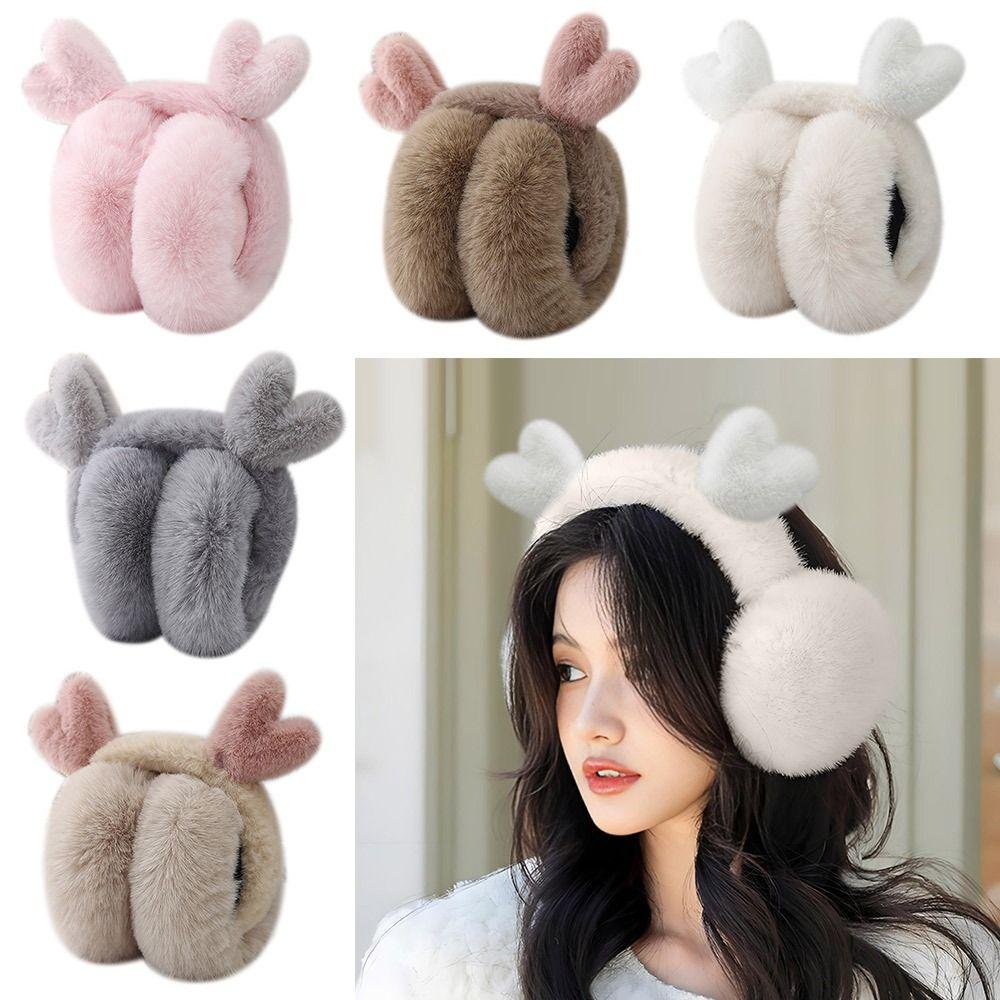 Fashion Plush Deer Ear Earmuffs Foldable Thickened Ear Cover Keep Warm Anti-Freeze Winter Earflaps for Women Girls