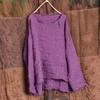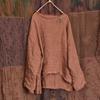 Johnature Vintage Women T-Shirts Solid Color Autumn Tees O-Neck Long Sleeve Embroidery Irregular Female T-Shirts