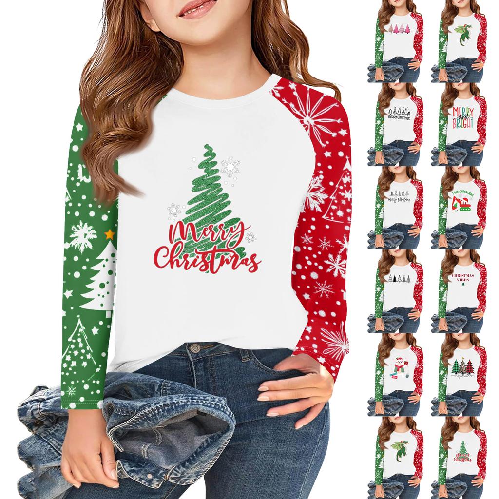Girls Long Sleeve Christmas Day T Shirts Kids Fall Tops Crewneck Basic Tees 5-14Y