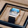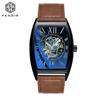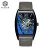 Finish 2027 Skull Face Mesh Strap Men's Waterproof Barrel-Shaped Tictok Watch with Leather Belt
