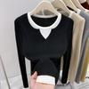 Women's Color Block V-Neck Two-Piece Sweater: Cozy Autumn/Winter Long-Sleeve Knitted Top