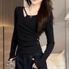 Introducing a stylish and comfortable addition to your autumn wardrobe, this plus-size women's T-shirt is designed with a double-sided ribbed texture for a unique look. Crafted from high-quality polyester, the fabric offers a soft and lightweight feel. Featuring a classic round neckline, this long-sleeve top accentuates your natural curves while providing a slimming effect. Perfect for a casual day out or a relaxed evening in, this cute T-shirt combines fashion and functionality effortlessly.