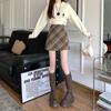 Vintage A-Line Plaid Wool Midi Skirt for Plus Size Pear-Shaped Women