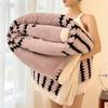 Fluffy Soft Plush Blanket for Winter Warm Thick Fleece Blanket with Geometric Striped Design Throws Blanket for Sofa Bed Bedroom