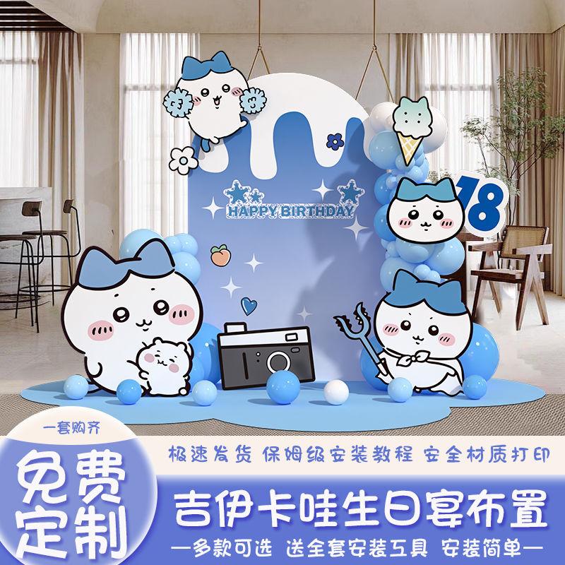 Chiikawa Usagi Birthday Party Decorations - Includes 10 Scene Set, KT Board, Balloons, and Wall Background