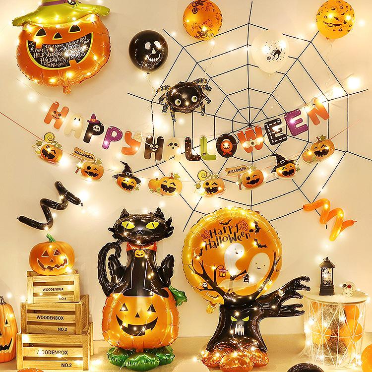 Halloween Theme Balloons and Pumpkin Lanterns for Indoor Decoration and Wall Scene Layout