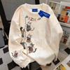 Pure Cotton American Trendy Tie-dye Round Neck Sweatshirt for Women Autumn Winter Loose Top