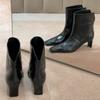 Sheepskin Version~ French Temperament Small Square Head Rear V-opening High-heeled Thin Boots Cowboy Boots Women's 2025 Fashion Boots Short Boots