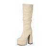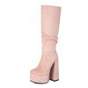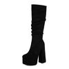 Ultra Thick Heel Knee High Boots Frosted Suede Leather Side Zipper Long Tube Platform New Size 35-47 Flocked Fashion Footwear