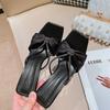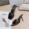Poplar Woods Rhinestone Square Head Satin High Heel Slippers Celebrity Temperament Thin Heel Champagne Cross Word with Sandals Woman