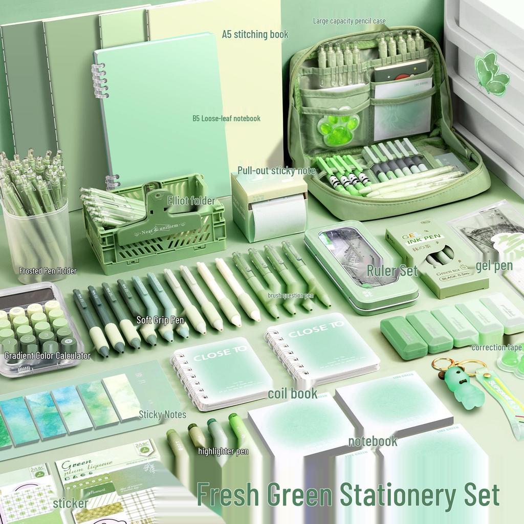 Green Back-to-School Stationery Gift Set for First Graders - Ideal Birthday Present for Girls
