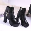 Fashion Fashion 2024 Women's High Heel Autumn Winter Chunky Heel Platform Shoes Side Zippers Ankle Boots Plus Size 33-43