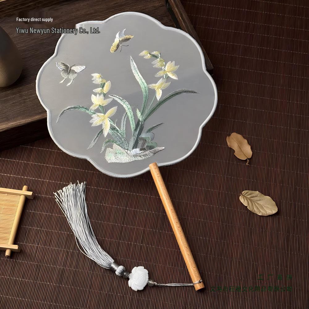 Double-Sided Suzhou Embroidery Round Fan: Ancient Hanfu Dance Accessory