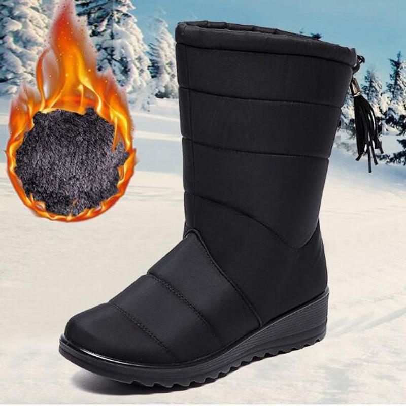 Wimter Mid-Calf Botas Femininas De Inverno Warm Large Size Tassel Wedge Waterproof Casual Women'S Snow Boots P269
