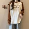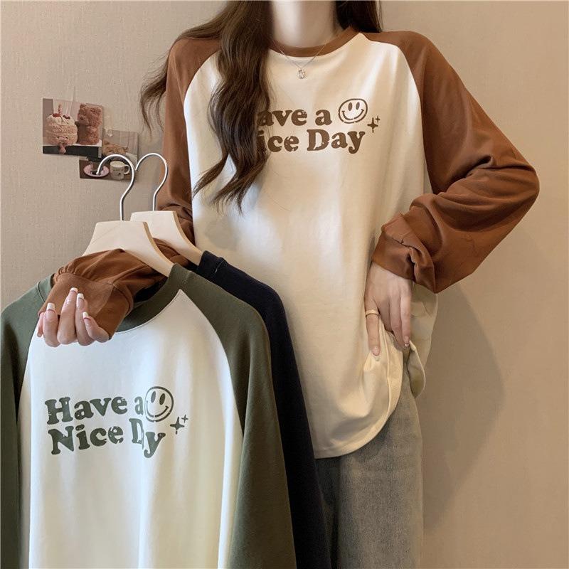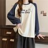 Retro Splicing Lazy Wind Loose Letter Printing Autumn Round Neck Real Shot Long Sleeve Top Women