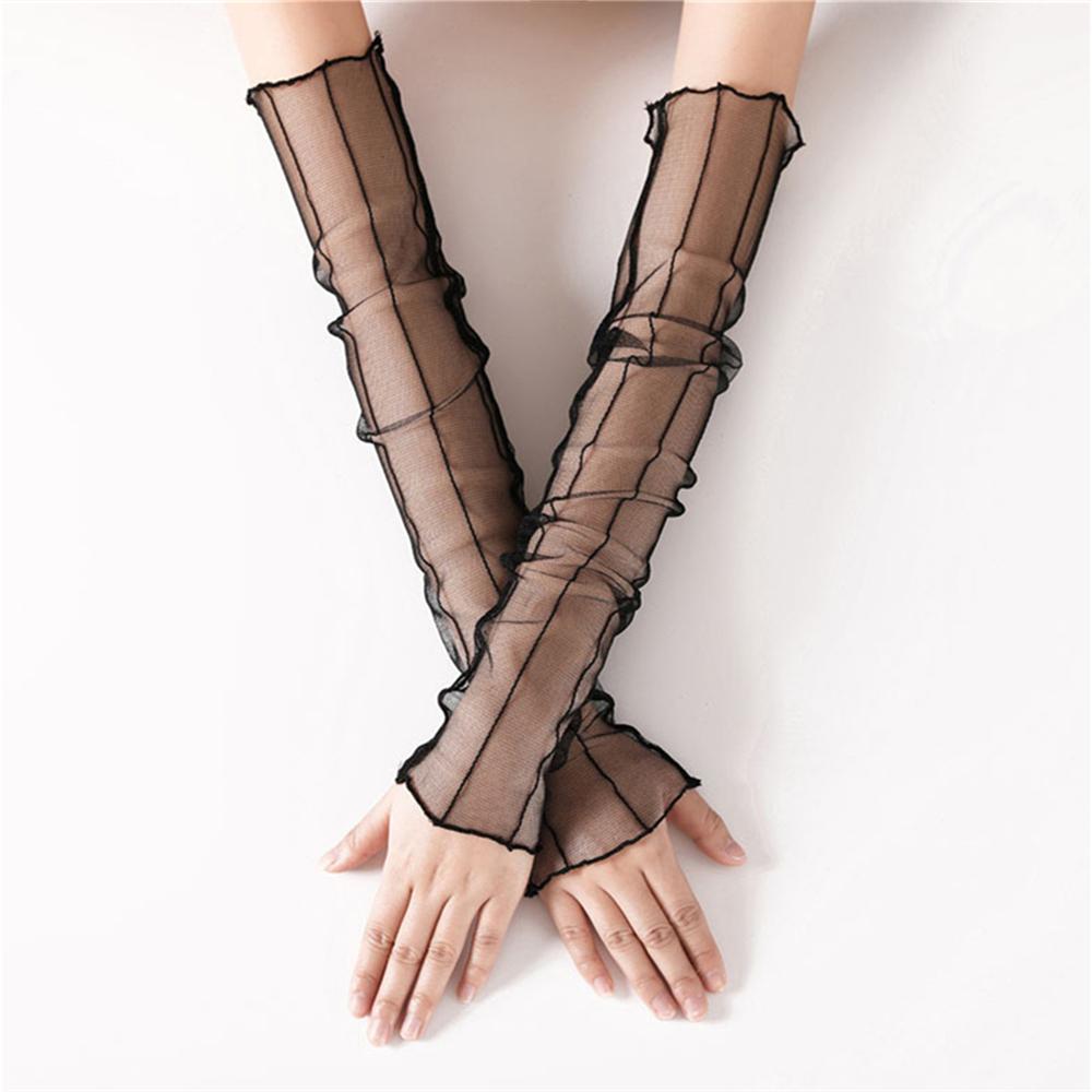 1 Pair Women Sexy Elastic Sleeve Driving Gloves Long Fingerless Fishnet Arm Sleeve Mittens Covered Summer Sunscreen Lace Gloves