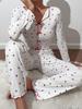 Experience comfort and style with this charming pajama set, featuring a delightful heart print design. Crafted from a blend of polyester and spandex, these pajamas offer a soft, stretchy fit that ensures a cozy night's sleep. The rib jacquard adds a unique texture, enhancing the overall elegance of the set. With its long sleeves, this pajama set is perfect for keeping you warm and snug, making it an ideal choice for cooler nights.