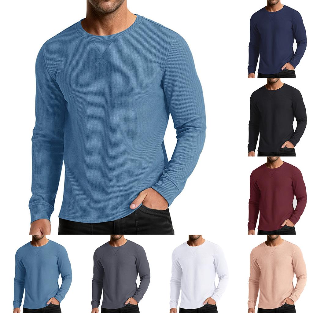 Men's Sporty Casual Round Neck Long Sleeve T-Shirt Knit Base Layer Top