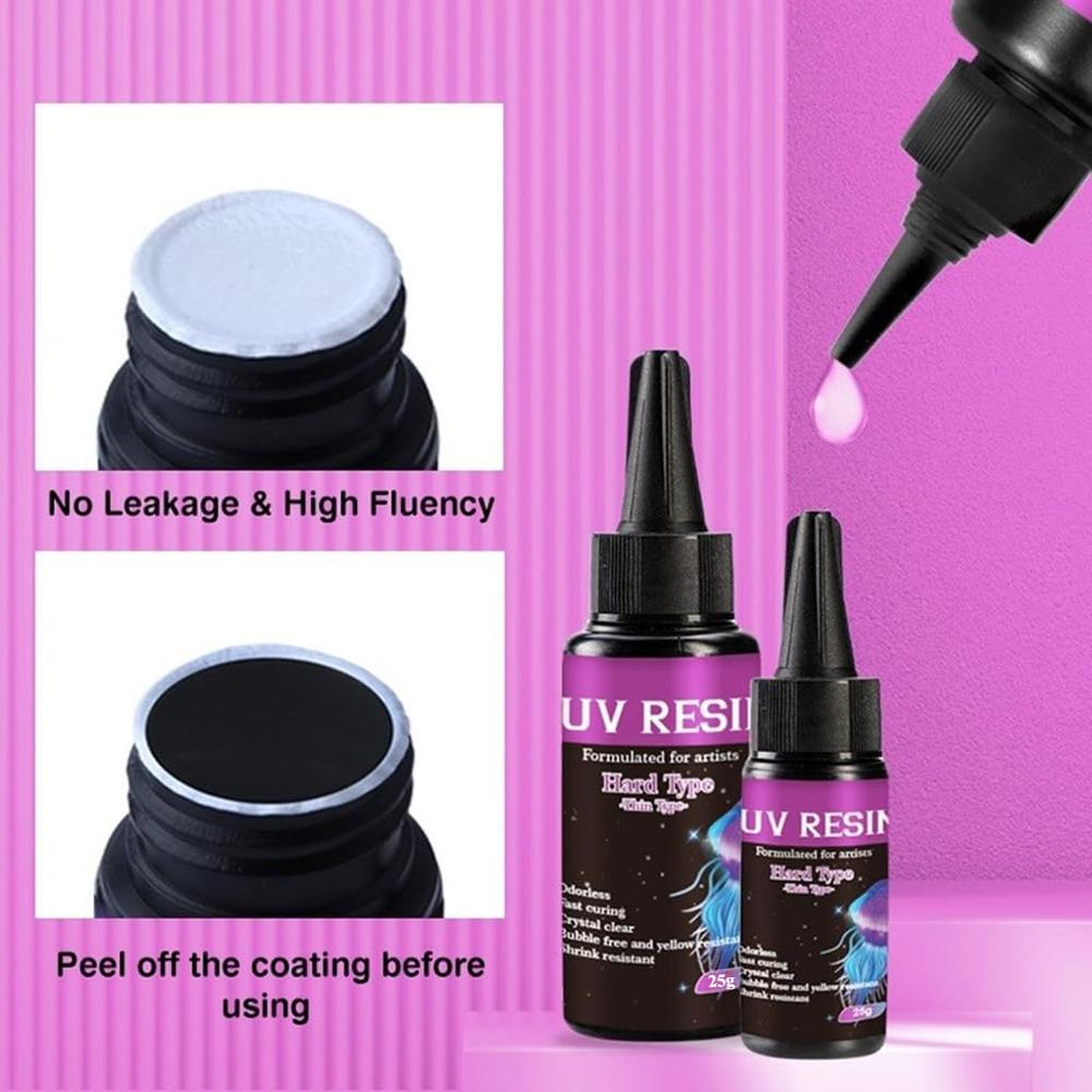 UV Resin Glue 25g Clear Hard Glue Quick Drying Solar Curing Epoxy High Hardness for DIY Jewelry Glass Metal Craft Decoration