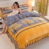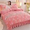 Thickened Milk Fleece Four-Piece Coral Fleece Quilt Cover, Bed Sheet Fleece Double-Sided Fleece Flannel Bedding, Bed Skirt